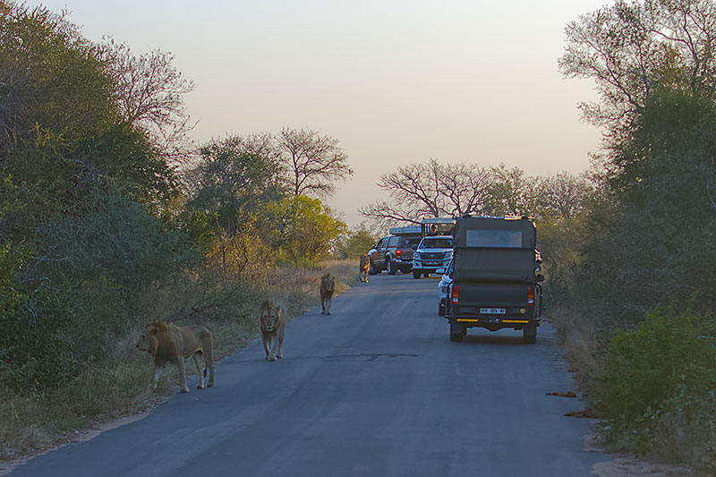 Straße mit ihnen teilen, zum Beispiel mit Löwen