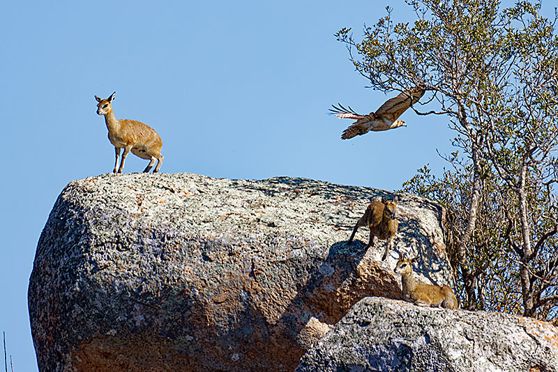 Ganz im Süden gibt es kleine Felshügel, die sogenannten Koppjes, dort leben die Klippspringer ganz in Ruhe.