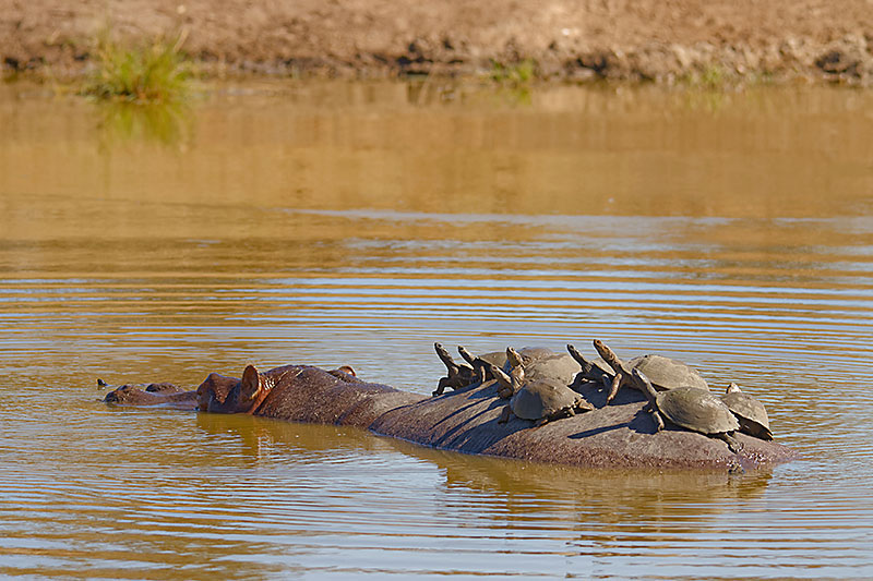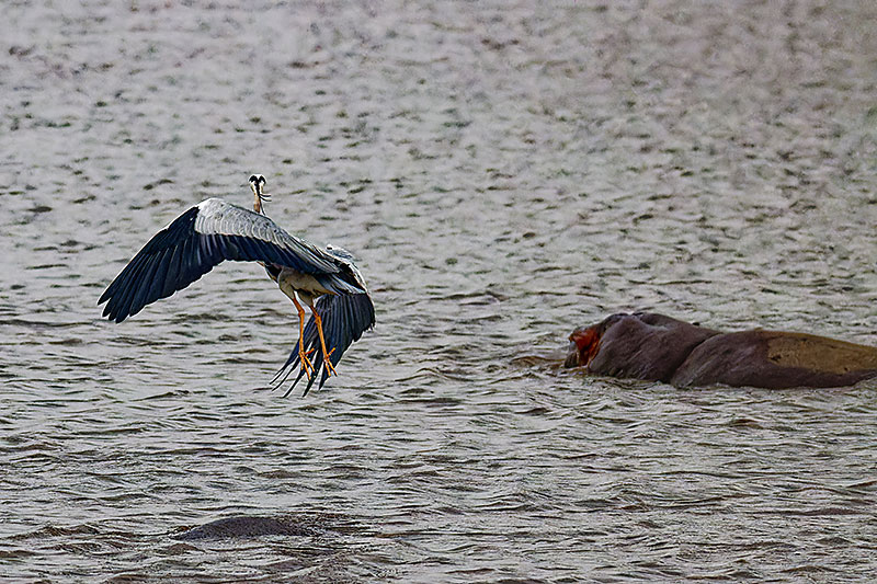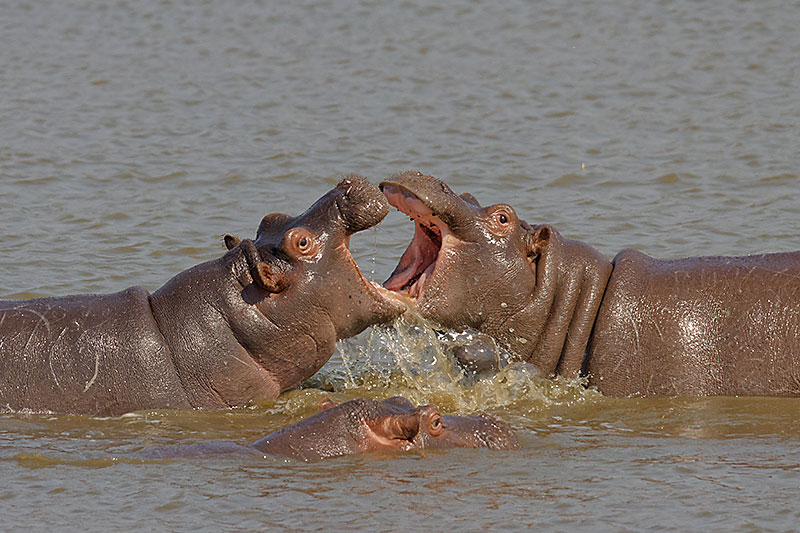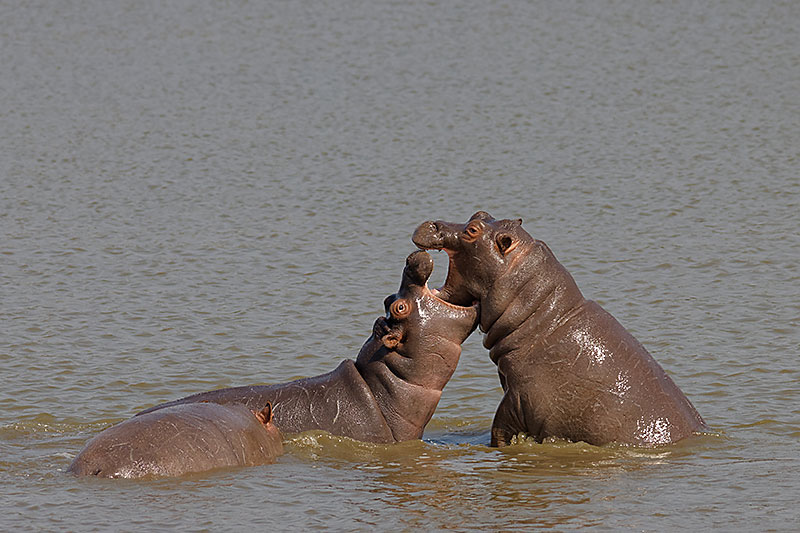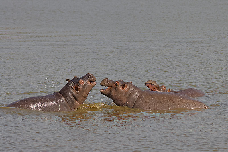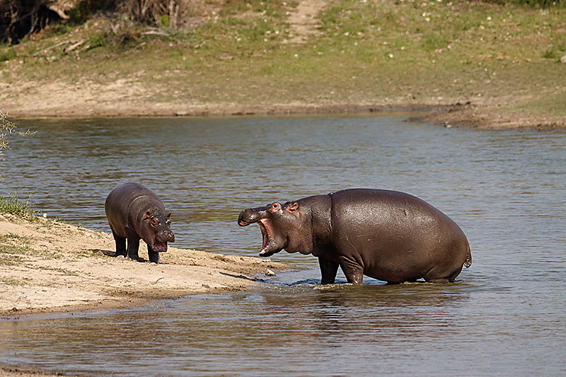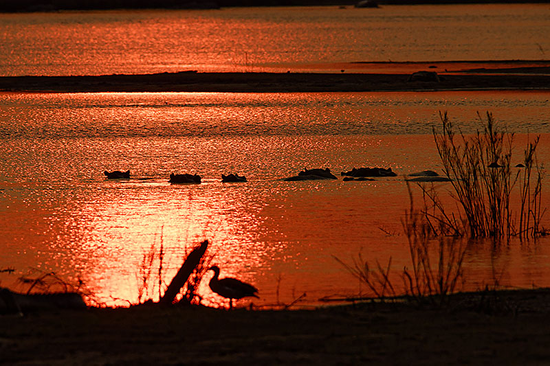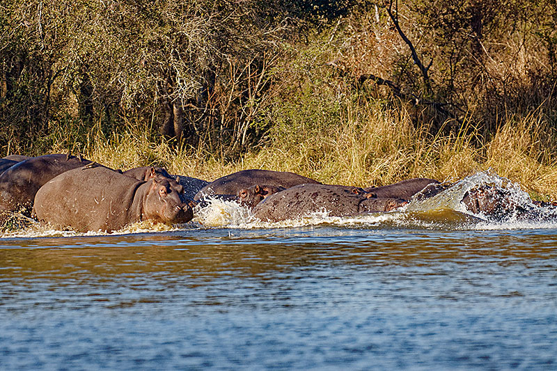 sehr zur Freude der Flusspferde, die sich mit Vergnügen ins Wasser stürzen.