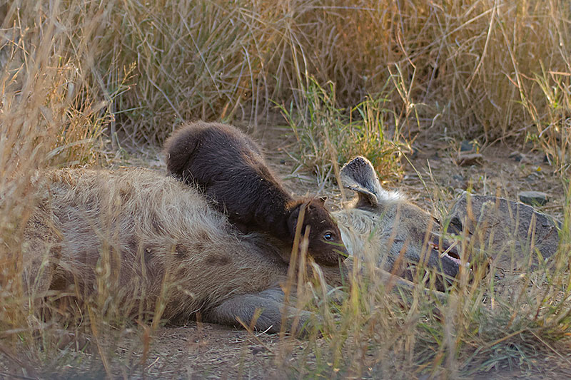 ersten Mal in unserem Leben sehen wir eine Braune Hyäne, die ist noch