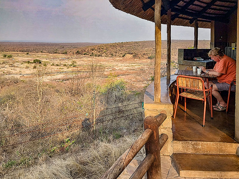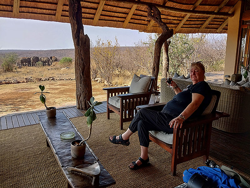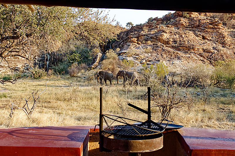 Löwenspuren gefunden, und man kann direkt von der Terrasse die Elefanten