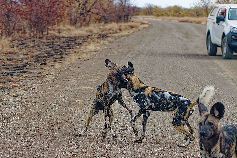 den Fahrer, was es denn hier zu sehen gibt. Er sagte, dass dort Wildhunde