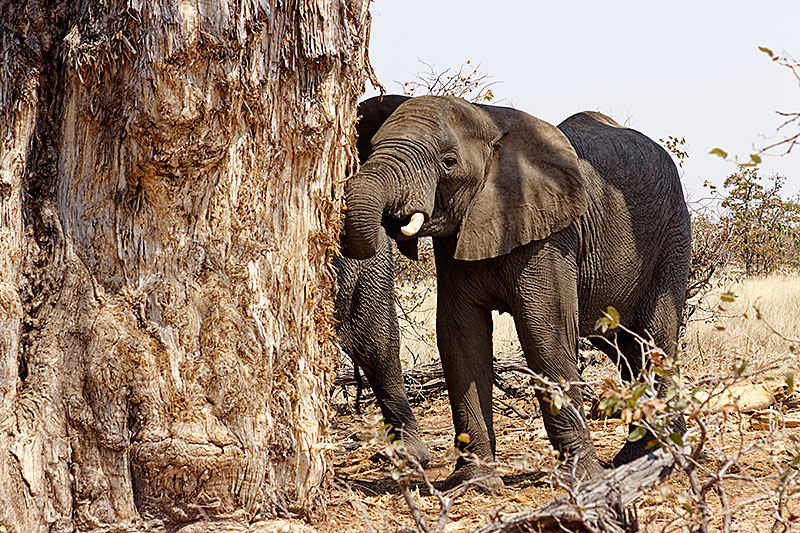 Die Elefanten reißen gerne die Rinde herunter und fressen sie. Das