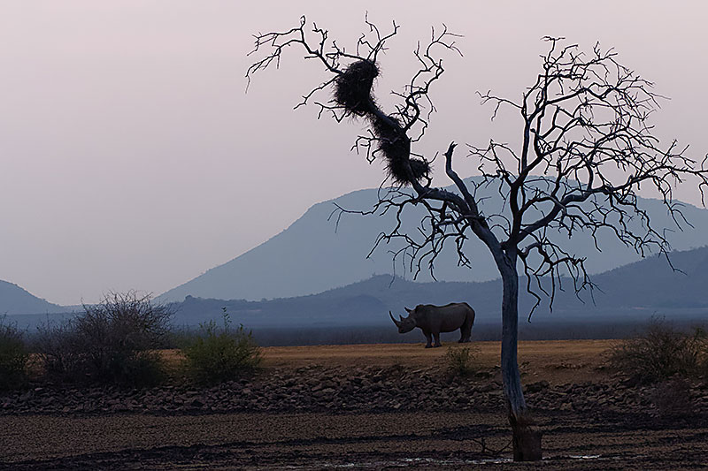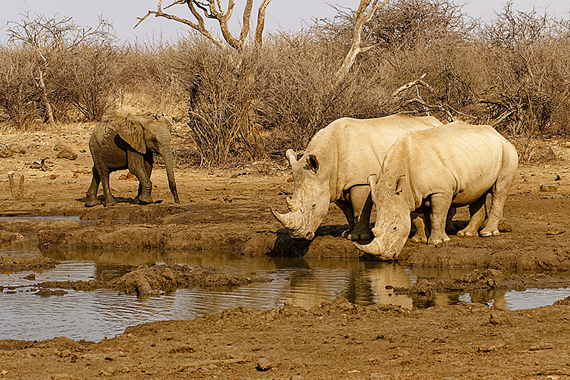 Aber es ist die einzige Wasserquelle und auch das Nashorn ist darauf