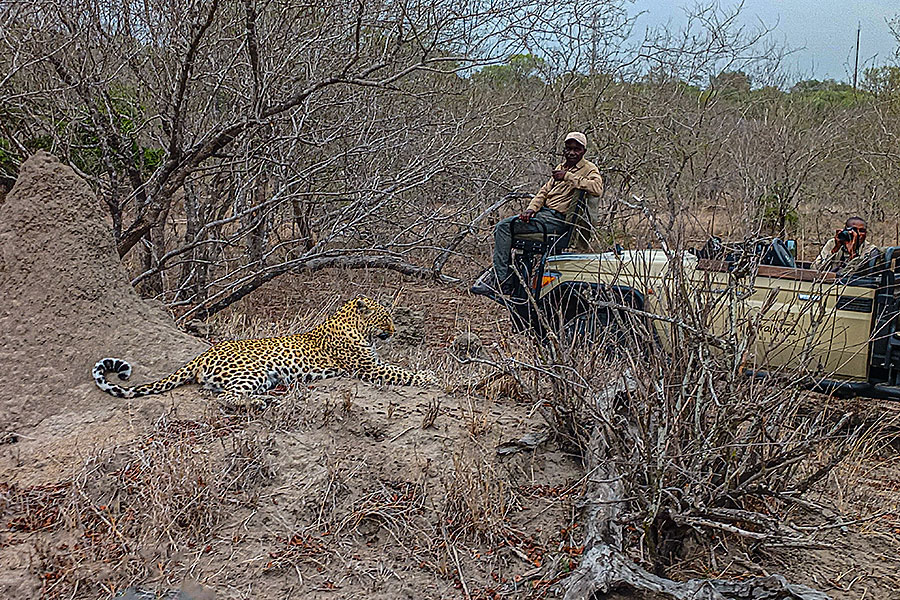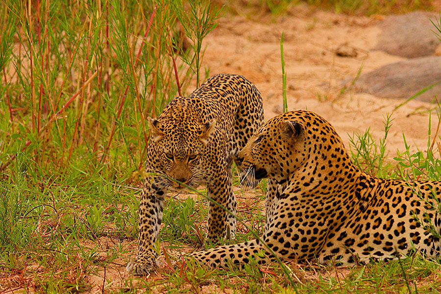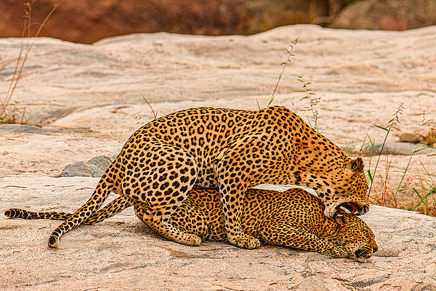 seltene Sichtung. In einem Flussbett entdecken wir ein Leopardenpaar, was sehr