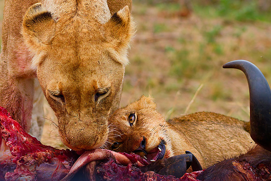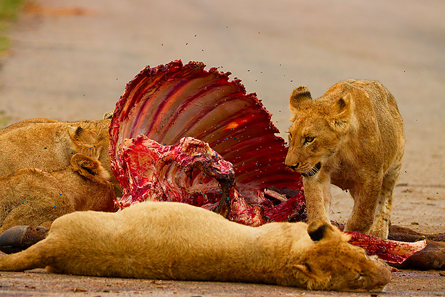 eine strenge Rangordnung gibt. Der Alphalöwe darf zuerst fressen, danach die