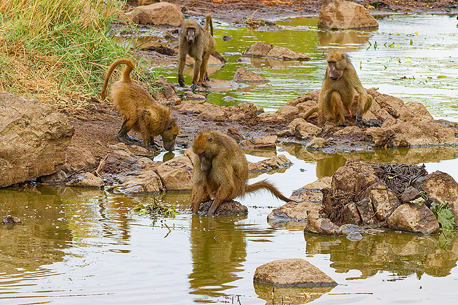 schauen wir uns doch lieber die friedliche Szene am Wasserloch an.