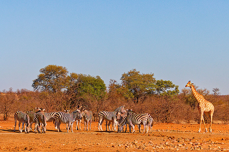 Giraffen sind sehr vorsichtig und schreckhaft. Wenn sie trinken wollen, müssen