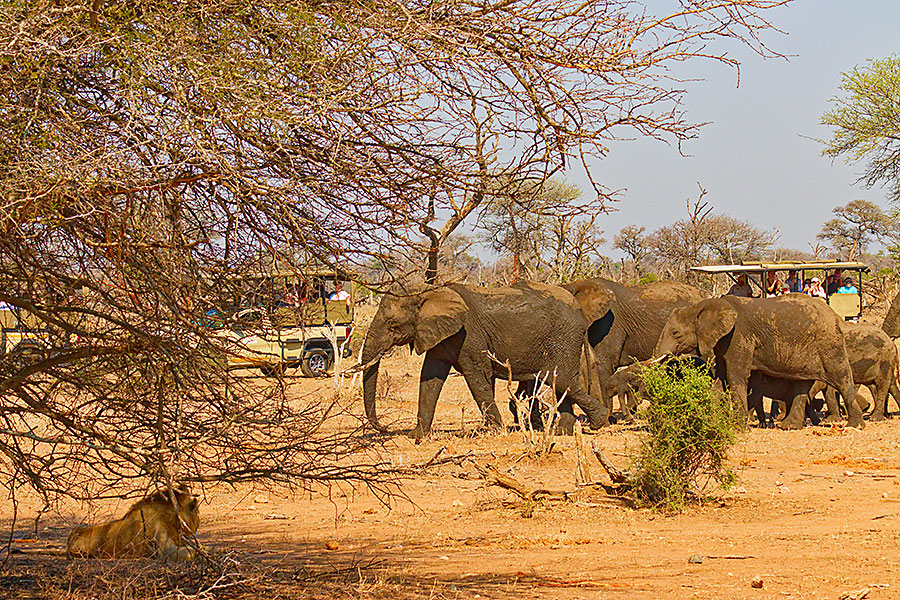 die Safari-Touristen, die plötzlich aus den Nichts auftauchen.