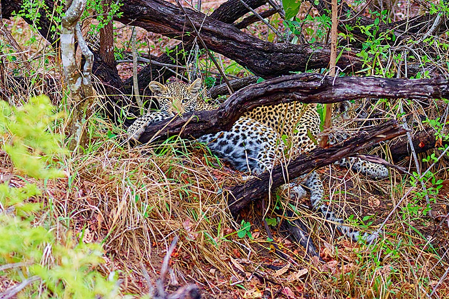 später treffen wir auf eine Leopardin mit ihrem Kind. Die Mutter hat eine
