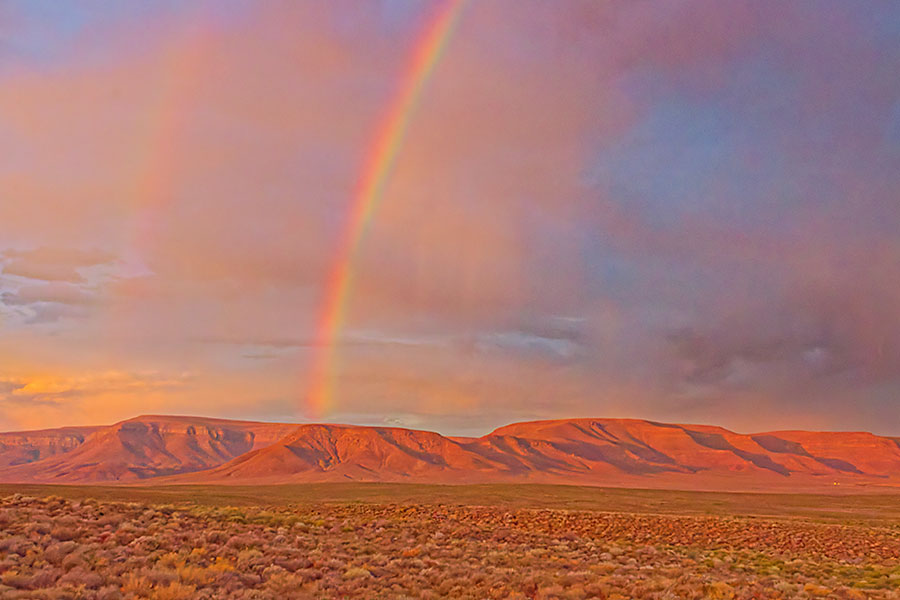 Wüste im Westen, offene Graslandschaften im Zentrum und das Roggeveld-Gebirge