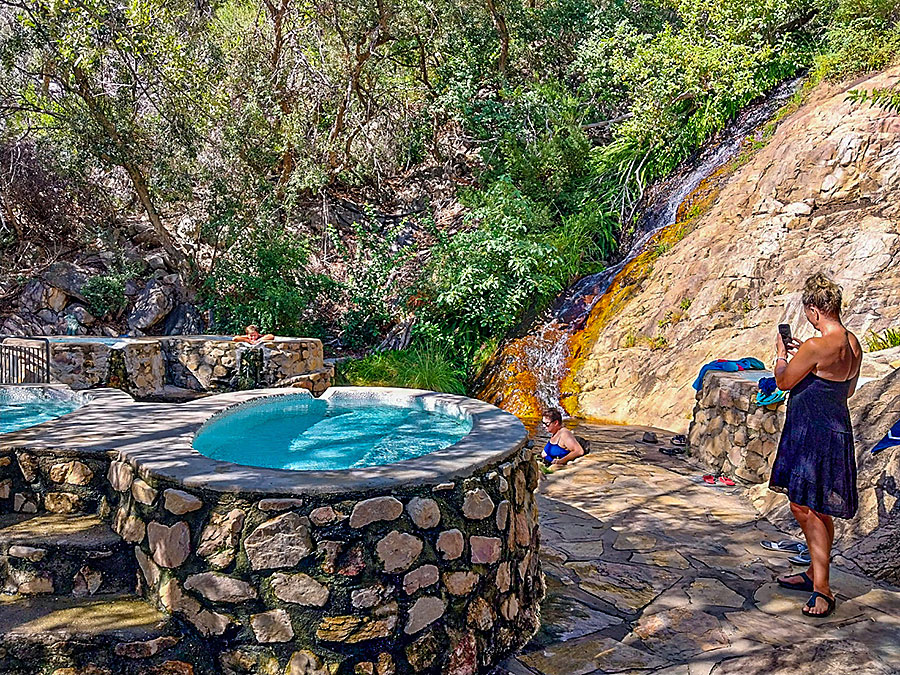 Quelle und das 42 Grad warme Wasser fließt in viele kleine Pools. Da kann jeder