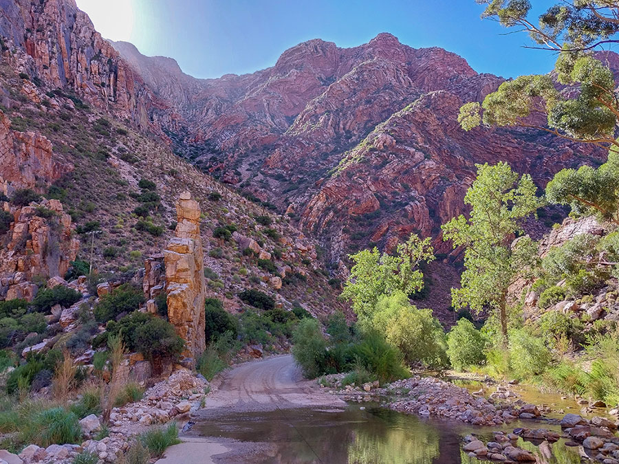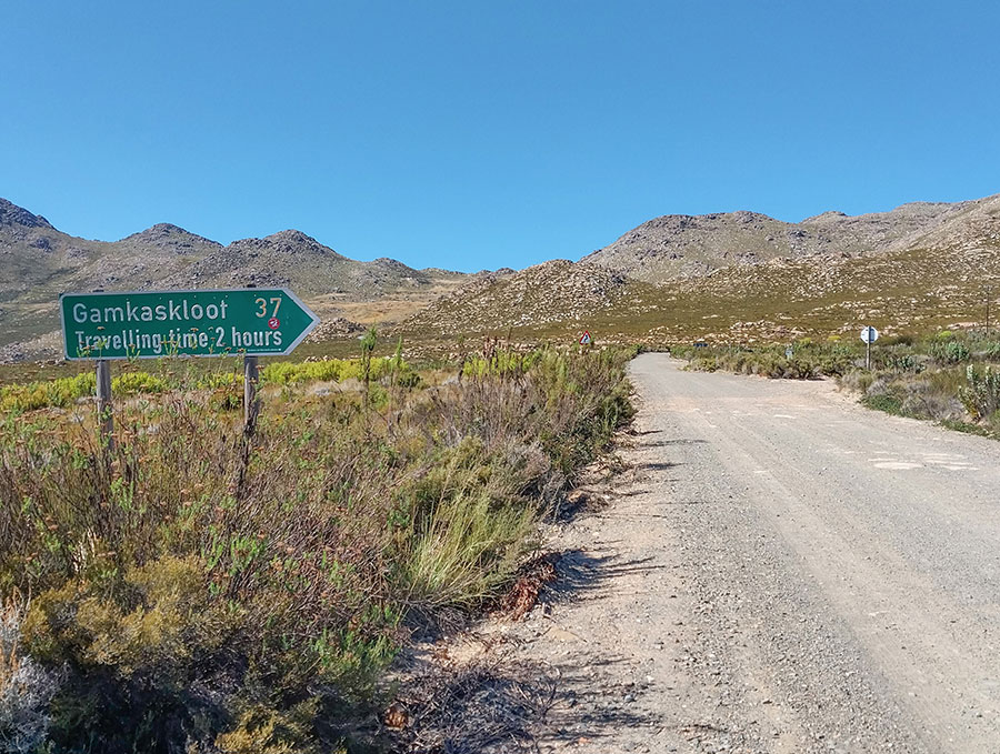 erst den Swartberg-Pass hochfahren, bis man zum Abzweig zum Gamkaskloof kommt.