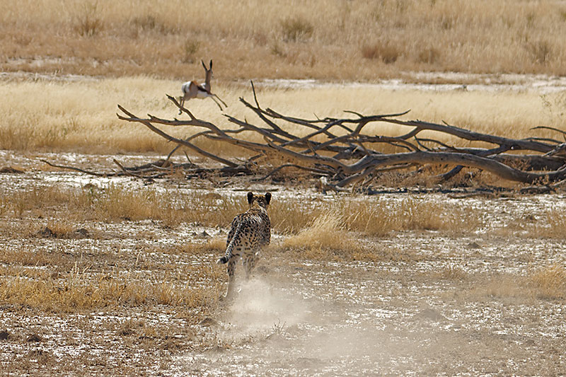 Gepard die Puste aus und der Springbock kann entkommen. Enttäuscht zieht der