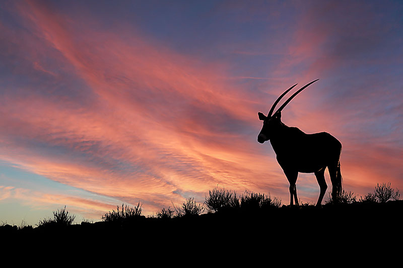 Gemsbock, auch genannt Oryx-Antilope, der eigentliche Star. Er ist ein echter