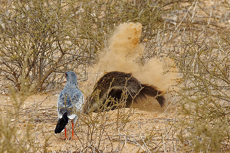 gerne in der Nähe von Erdmännchen auf, obwohl sie von denen gemobbt werden und