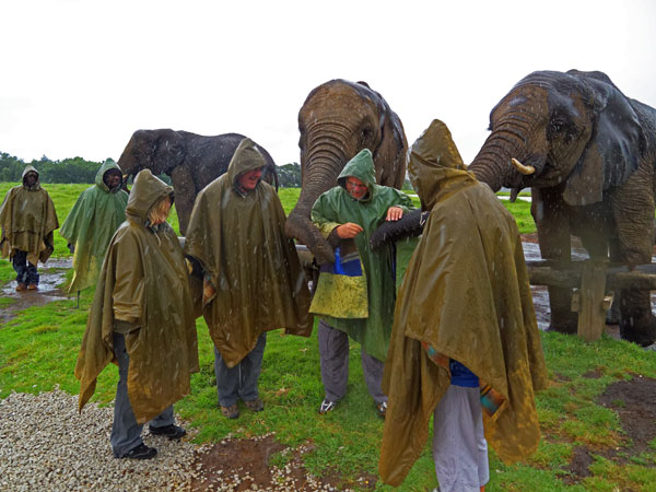 Am nächsten Tag wollten wir eigentlich in einem Elefanten-Waisenhaus einen Spaziergang mit Elefanten durch den Regenwald machen, aber es hat immer noch geregnet und so haben wir beschlossen, darauf zu verzichten, wollten aber trotzdem die Elefanten kennenlernen. In dieser Eirichtung werden verwaiste oder verletzte Elefanten aufgenommen und aufgepäppelt, um sie anschließend in private Schutzgebiete zu verkaufen. Also haben wir die Elefanten, bewaffnet mit einem Früchtekorb, auf ihrer Weide aufgesucht. Wie man sieht, haben sie mich gleich ins Herz bzw. in den Rüssel geschlossen.