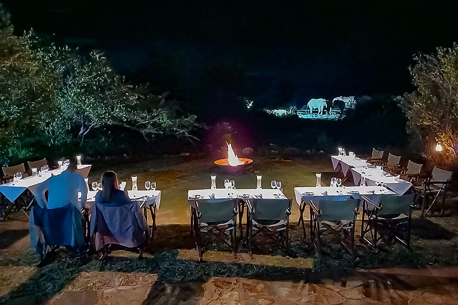im Boma, auf der Veranda oder wie hier im Garten mit Blick auf das beleuchtete