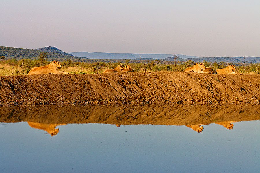 so viele Savannentiere sind, sind die Löwen nicht weit. Tatsächlich lungern