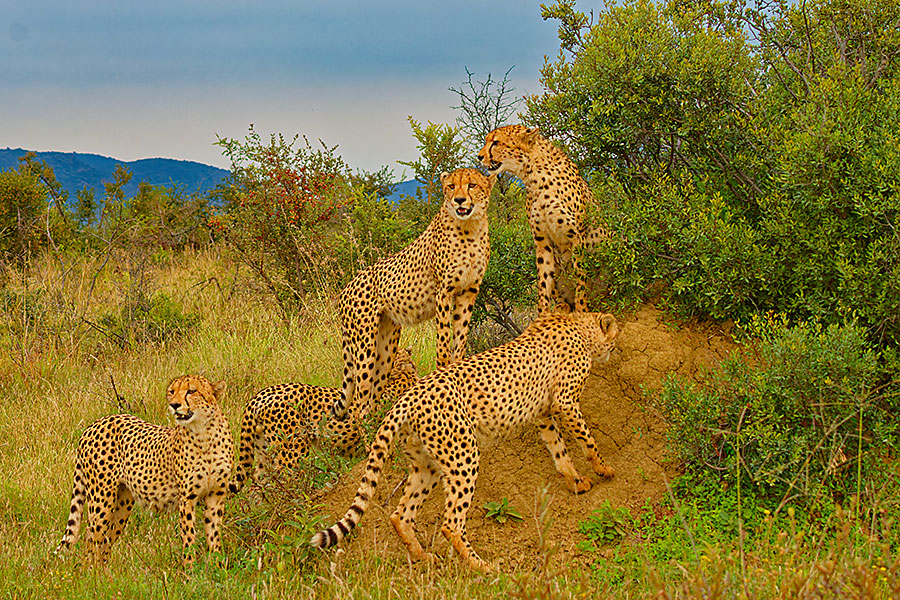 fünf Geparden sind Brüder. Ihre Mutter wurde bei der Jagd getötet und die