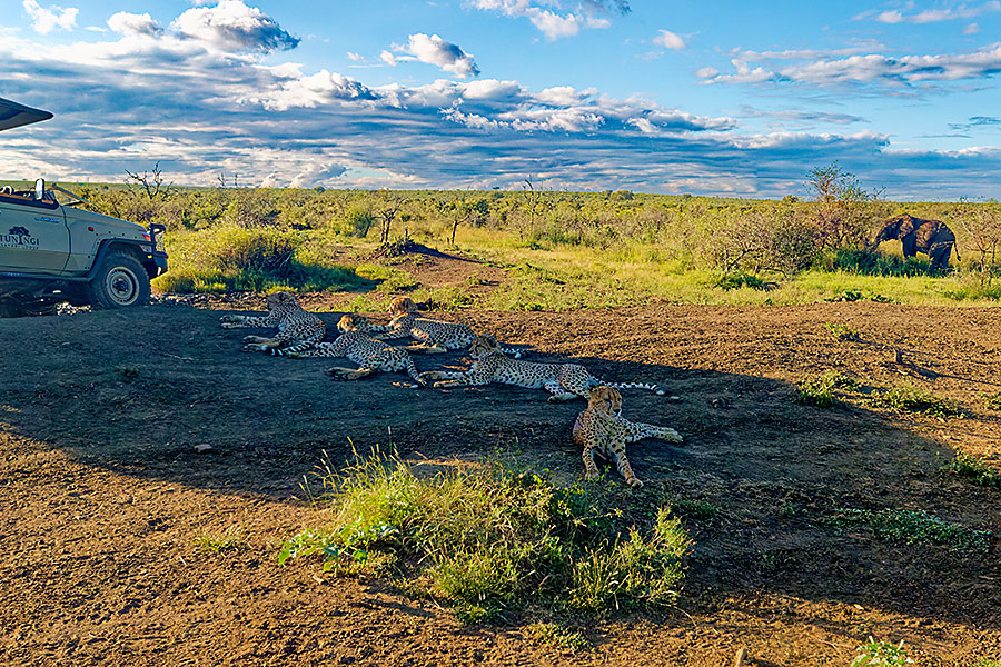 erreicht ein Funkspruch, dass die Geparde auf der Jagd sind. Wir machen uns auf